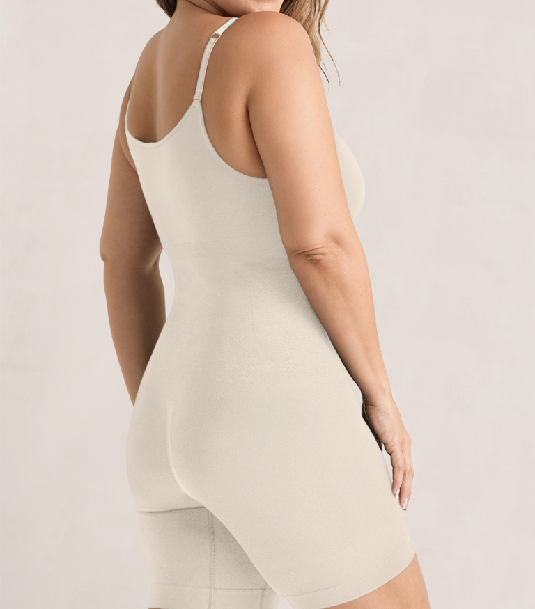 صُمم هذا المشد بتقنية تنحيف 360 درجة ليمنحك إطلالة ناعمة ومشدودة من أعلى الظهر حتى الفخذين. مصنوع من قماش قابل للتنفس يمنحك إحساساً بالراحة والثقة طوال اليوم، مع شد وتنسيق مثالي للبطن، الخصر، الفخذين، والمؤخرة.